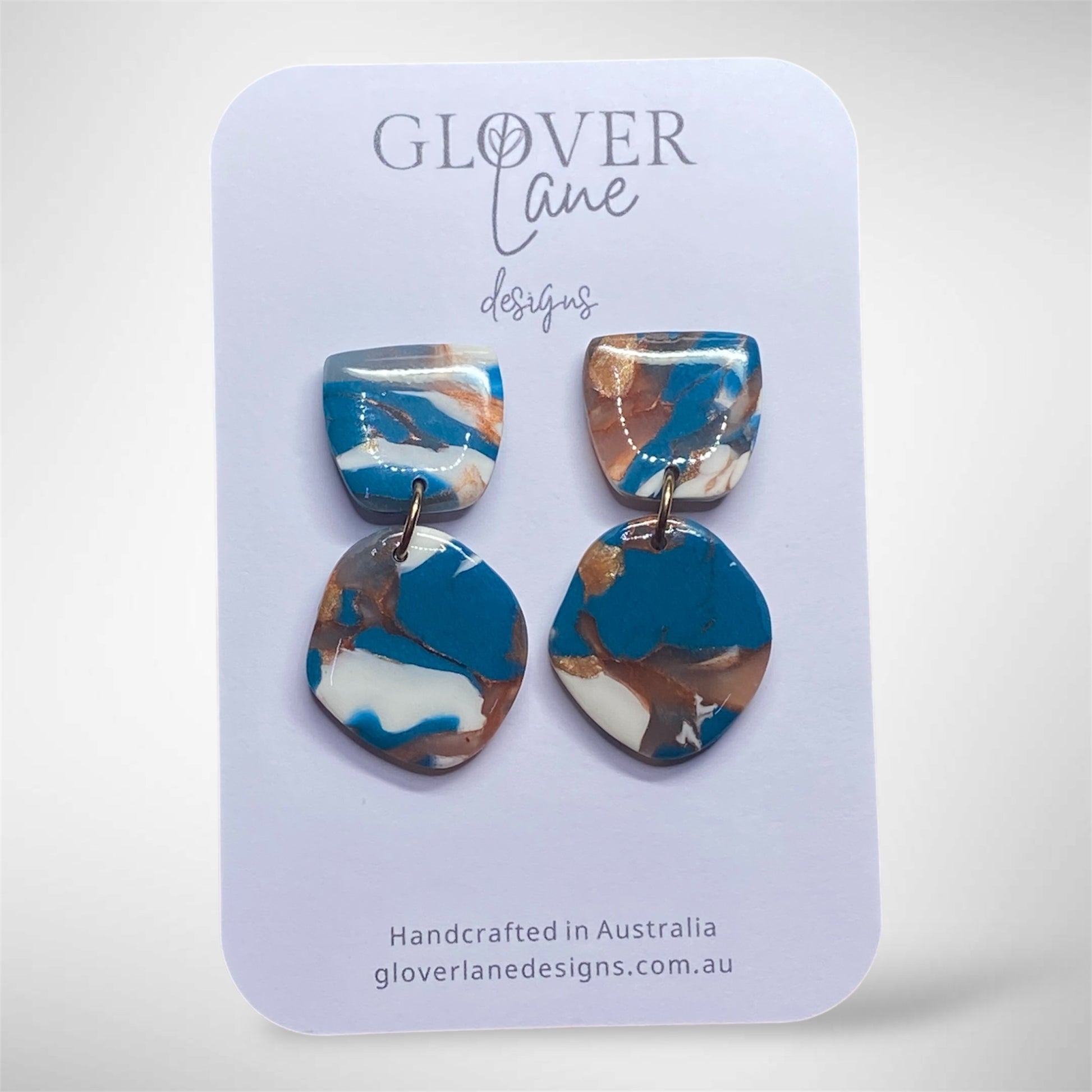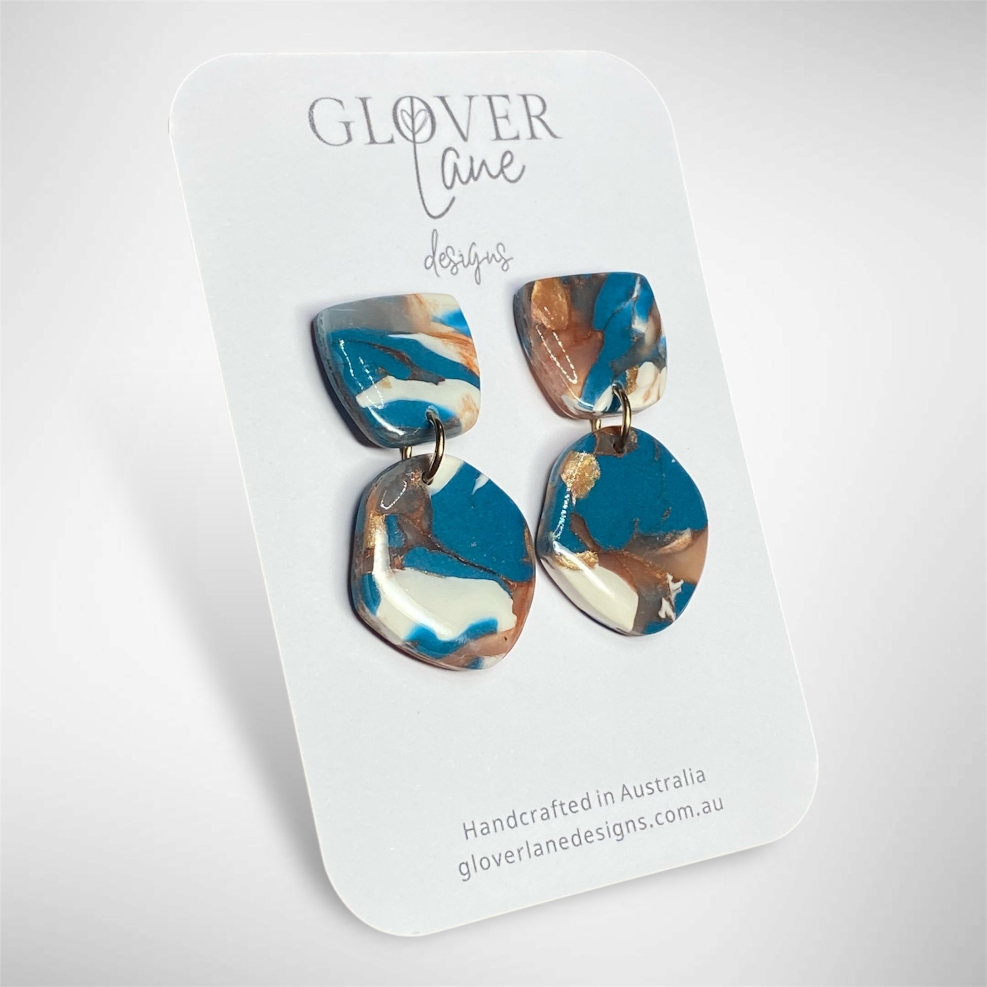 Stunning abstract polymer clay dangles, coated in resin for that beautiful shine. Hand blended marble colours make these unique earrings stand out in the crowd.