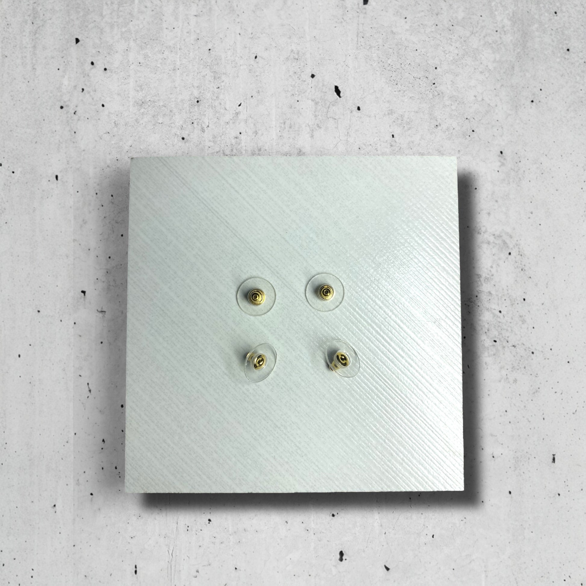 304 Surgical Stainless Steel Earring Backs are made to fit on all our earring posts and have plastic discs to help to distribute the earring weight and keep it secure during wear. 304 Surgical Stainless Steel metal coated in a gold rhodium plating for a shiny finish.