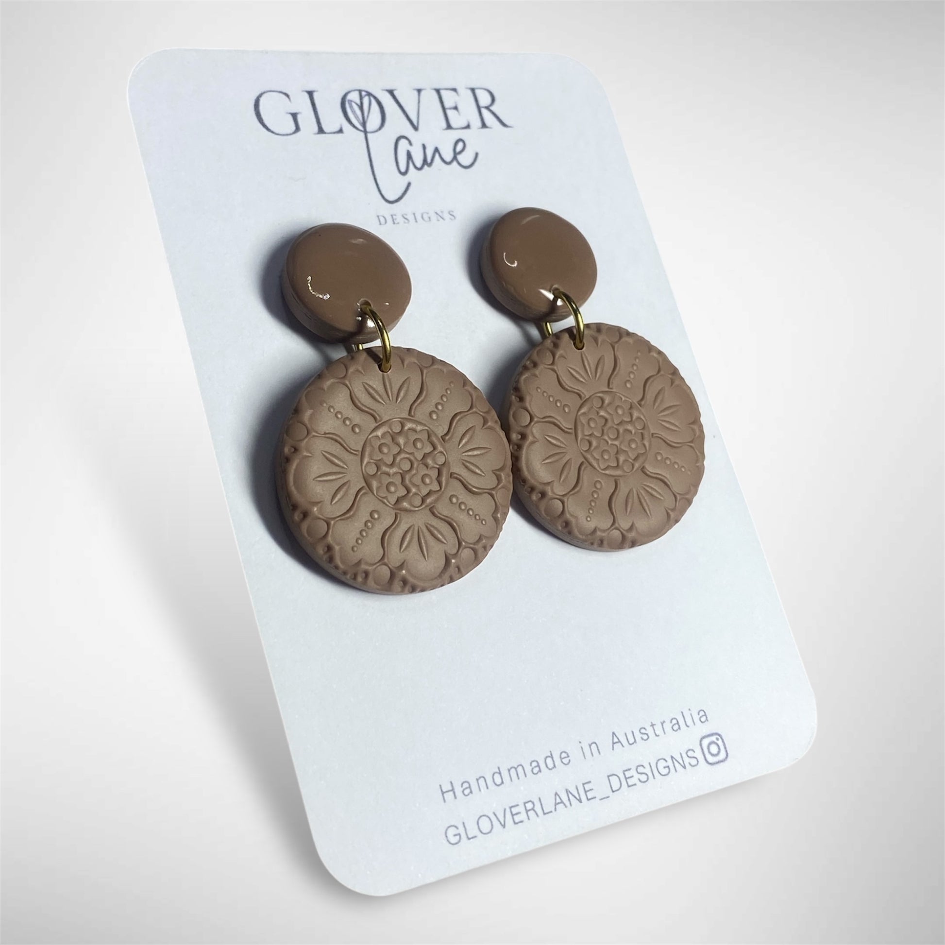 These stunning earrings are sure to compliment your outfit. Featuring a subtle floral texture, they are super lightweight and super cute. The resin covered top adds a lustrous shine and compliments these JAZZ Dangles.
