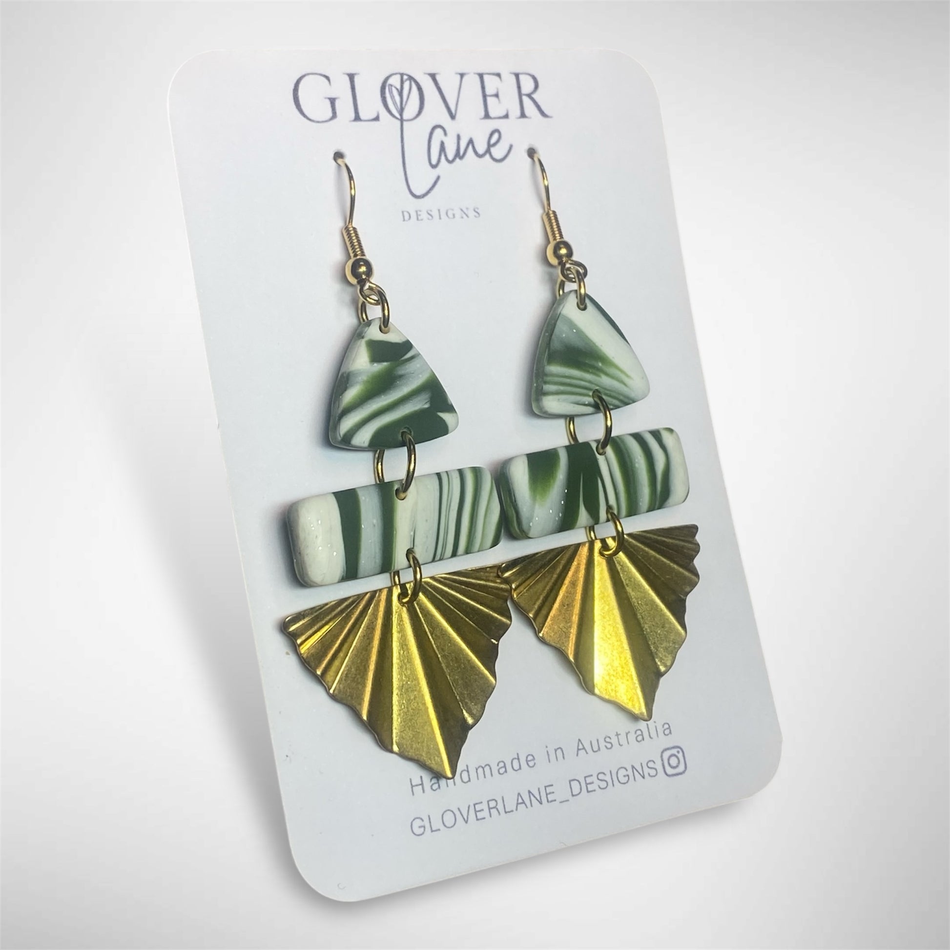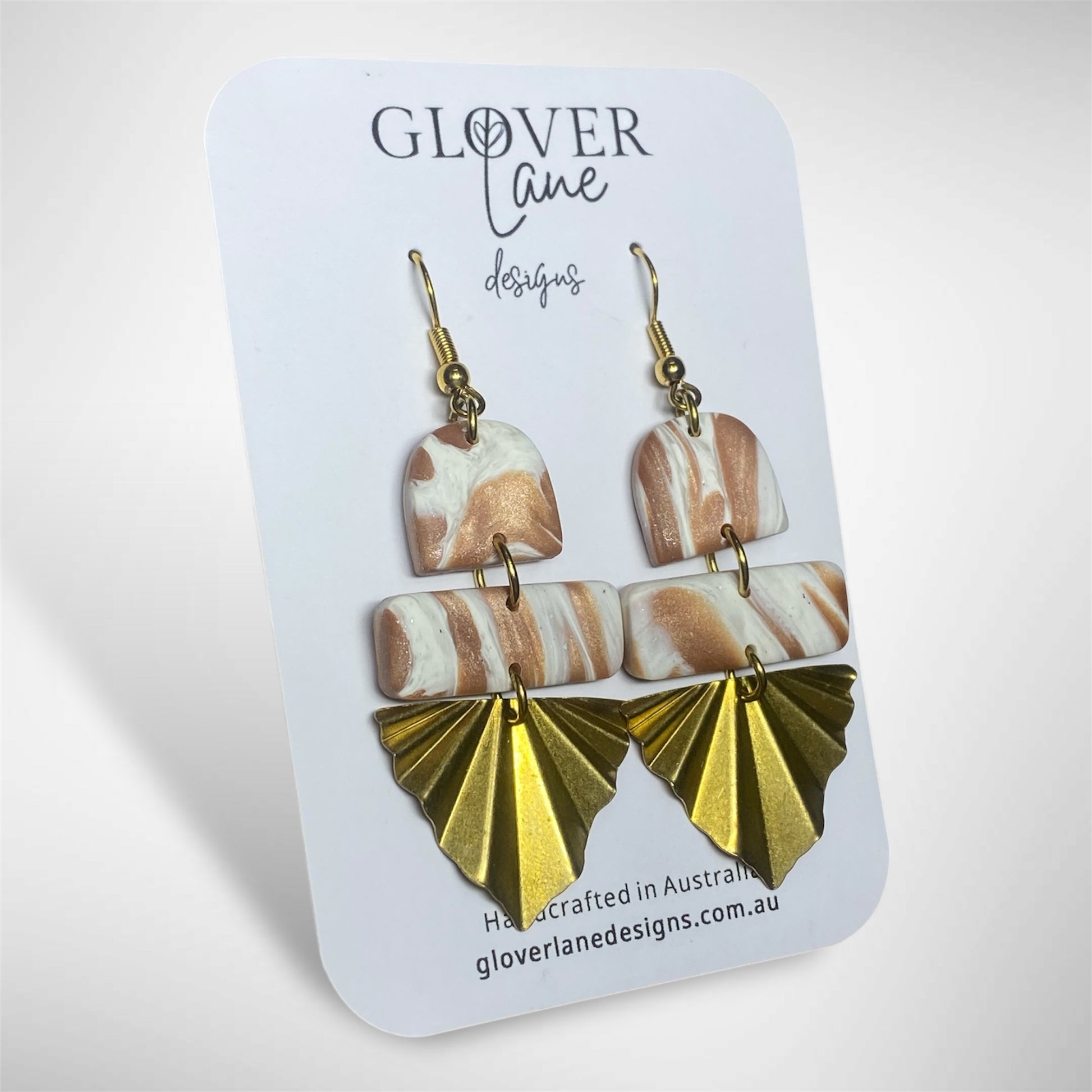Make a statement with our Marble Mirage Earrings, a perfect blend of elegance and artistry. Handcrafted from lightweight polymer clay, these earrings feature a stunning marbled swirl of colours, creating a unique, organic pattern on every pair. The bold brass fan detail adds a touch of vintage glamour, catching the light beautifully with every movement.