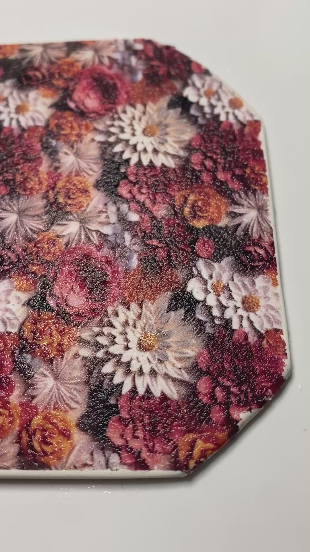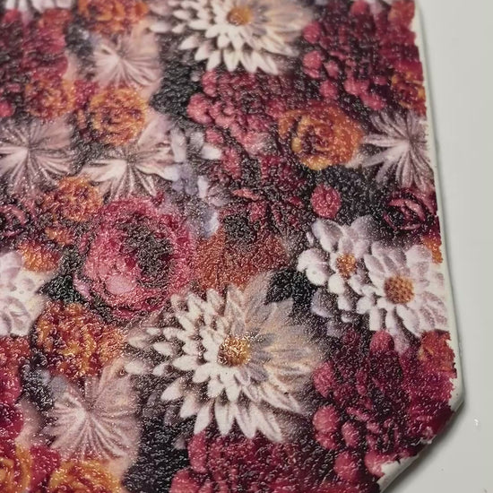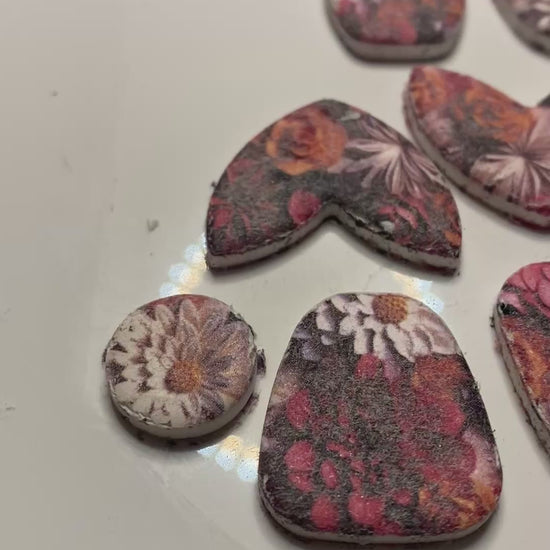 Stunning mauve vintage inspired floral print polymer clay dangles, coated in resin for that beautiful shine.