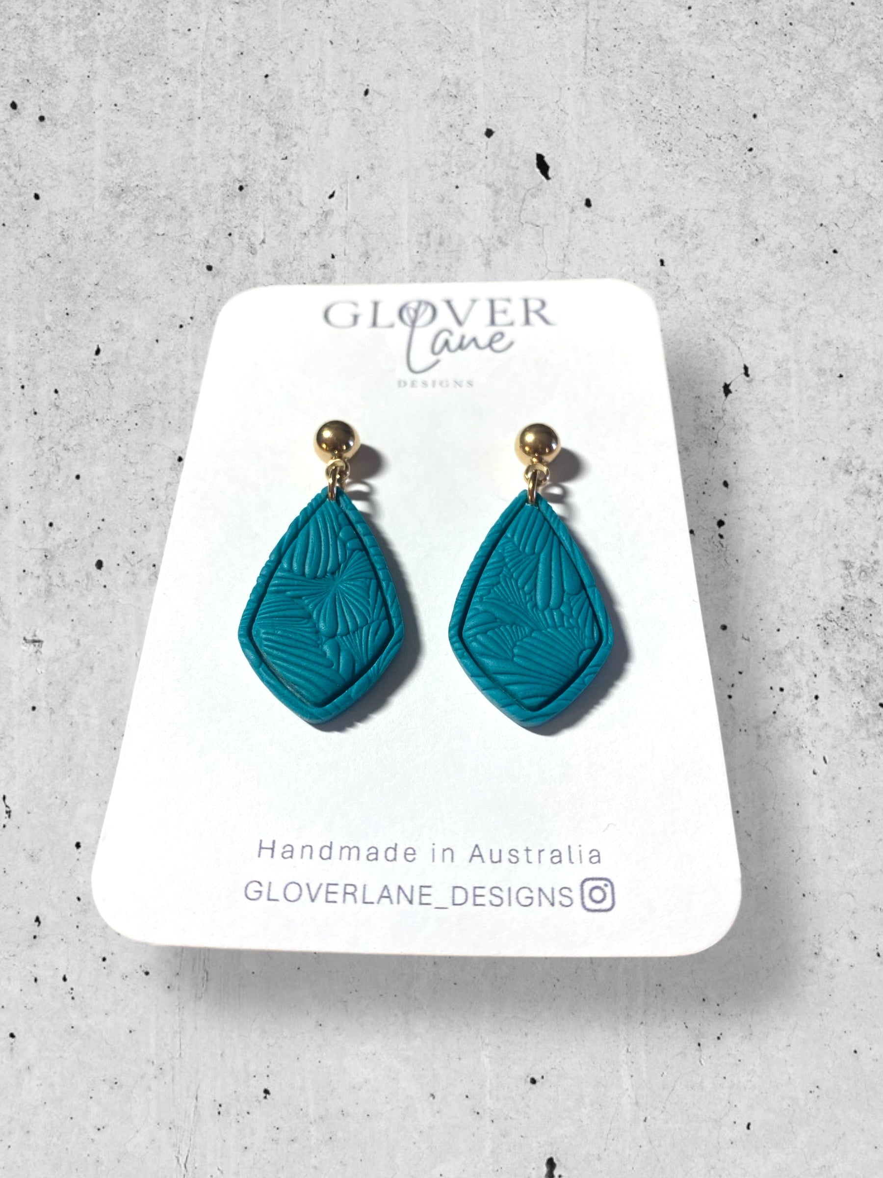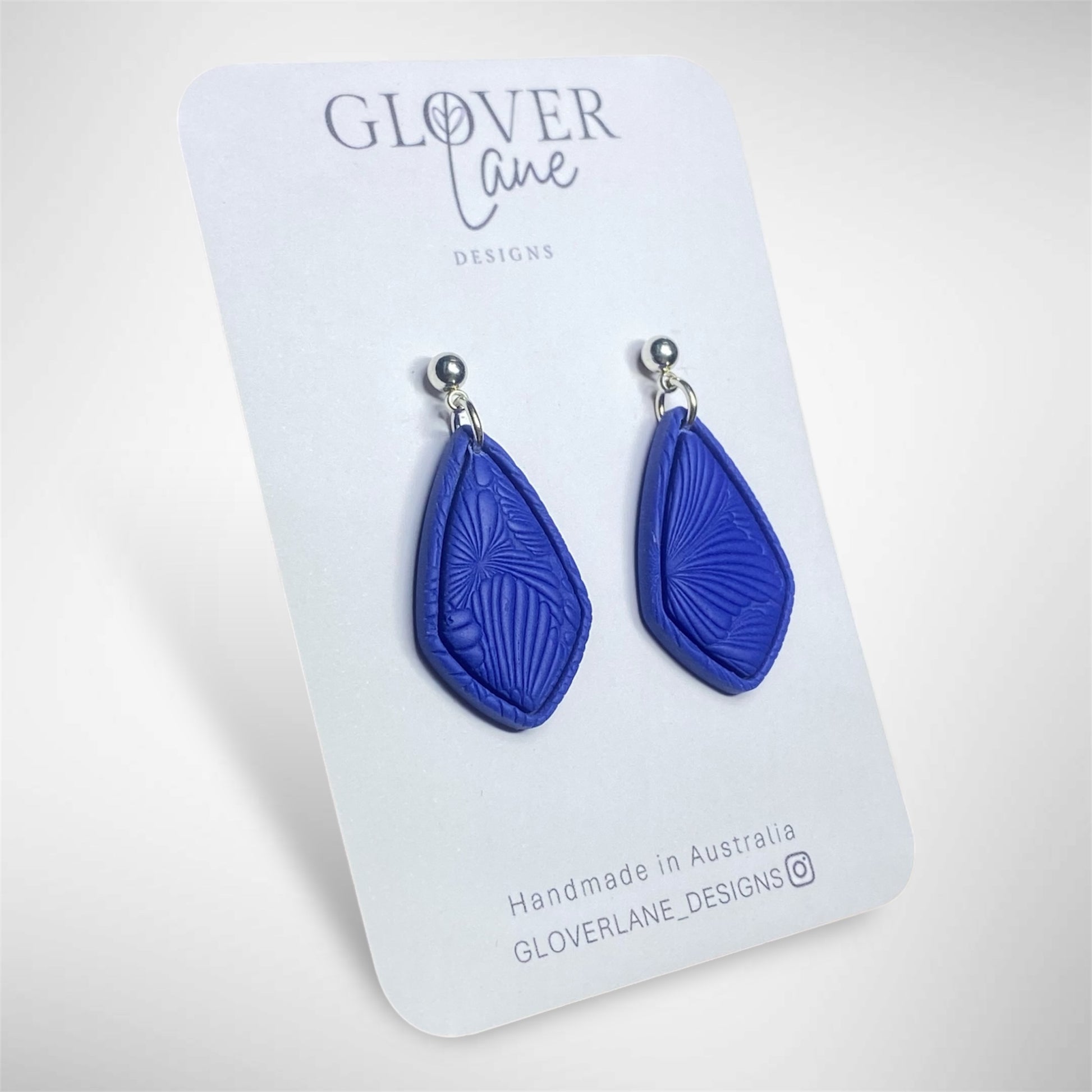 Make a statement with these handcrafted polymer clay earrings, featuring delicate organic imprints. Their elegant drop shape is paired with 304 surgical stainless steel ball posts coated in a high quality rhodium for a sleek shine — perfect for adding a touch of artisan charm to any outfit. Comes with matching butterfly earring backs.